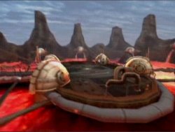 Umgeben von flüssiger Lava kämpft man hier einen "Listenkampf".