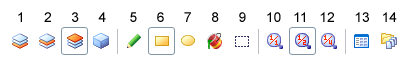 Füllt automatisch einen gewählten Bereich mit der aktuell angeklickten Resscource (siehe 14) in der Form eines Quadrates. Ideal für Wälder, Meere und auch Gebäude.7. Ellipse