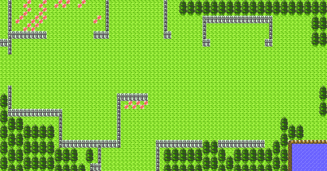 Das neue (oder alte) Malvenfroh City ist nun zwar in G/S/K-Tiles getaucht, sieht aber trotzdem noch nicht wirklich nach einer richtigen alten G/S/K-Stadt aus. Um der Demap den letzten Schliff zu geben, müssen noch einige Änderungen vorgenommen werden.Der größte sofort sichtbare Fehler der Map ist die Stellung der Bäume. In den alten Maps und auch in den neueren Spielen, stehen diese immer gerade in einer Reihe nebeneinander. Darum müssen sie ein wenig verrückt werden. Die beiden Bäume am östlichen Rand der Map, direkt unter dem türlosen Haus können leider nicht verschoben werden, weswegen sie vollkommen entfernt werden.