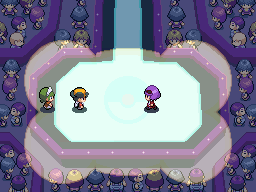 Den Kampfsaal findest du im Nordwesten der Kampfzone. Die Besonderheit liegt darin, dass du mit nur einem ausgewählten bzw. zwei ausgewählten Pokémon antrittst. Der Vorteil liegt allerdings darin, dass das Level des Pokémon nicht auf das Level des Gegners reduziert wird, sprich je höher du antrittst, desto bessere Chancen hast du. Der Kampfsaal ist ein perfekter Ort zum Testen seiner Pokémon.![]() |