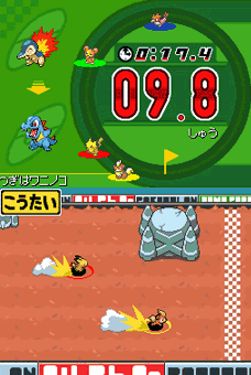 Kategorien: Kraft, AusdauerBeim der Herausforderung Ziegelbrechen müssen deine Pokémon stark und schnell sein. Immer ein Pokémon wird von dir kontrolliert und das Ziel ist es, dass dieses Pokémon den Block vor sich zertrümmert. Wie so oft, geschieht dies natürlich über den Touch-Screen. Leichter geht das Spiel, wenn dein Pokémon in einen guten Rhythmus kommt, damit es die Blöcke erfolgreich zerschlagen kann. Auf dem oberen Bildschirm kannst du sehen, wie viele Blöcke deine Gegner schon zertrümmert haben und wie gut du im Rennen mit ihnen bist.