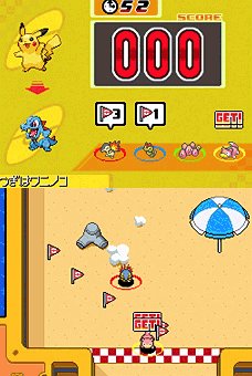 Kategorien: Technik, KraftInsgesamt werden vier Dreier-Teams am Torschießen teilnehmen. Wie nicht anders zu erwarten, müssen deine drei Pokémon Bälle, die sich auf dem Spielfeld befinden, in die Tore der Gegner schießen. Für ein Tor erhältst du einen Pluspunkt und dem gegnerischen Team wird gleichzeitig ein Punkt abgezogen. Während des Spiels kann außerdem ein goldener Ball erscheinen, der nicht nur einen Punkt zählt, sondern zwei Punkte. Mit dem Stylus kannst du zudem die Kraft, die hinter den Schüssen steckt, kontrollieren und die Pokémon bewegen, denn sie müssen ja auch dein eigenes Tor verteidigen.