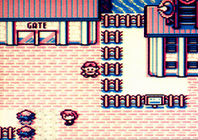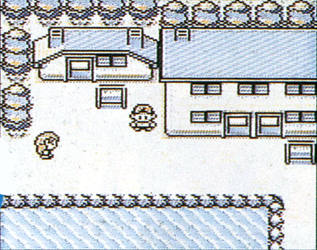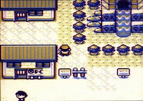 | Der Spieler vor seinem Zuhause und dem Pokémon-Labor. |