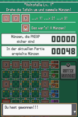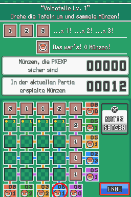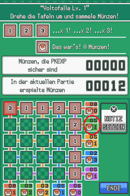 Berührst du das Feld "NOTIZ SETZEN", erscheint das Notizfenster. Dort kannst du das Spielfeld per Touchpen mit speziellen Markierungen versehen. Deckst du ein VOLTOBAL auf, gehst du vollkommen leer aus!