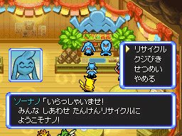 Explore Recycle & Big Treasure The other stall is a two-function stall owned by Wobbuffet & Wynaut. First, Explore Recycle, run by Wynaut, allows you to exchange excess items that you have for other items. The quality of these items increases with the more items you trade in so be sure to keep coming to the Explore Recycle stall. The Big Treasure stall, run by Wobbuffet, has you enter a Lottery for a certain price. The prizes for this lottery vary so you never know what you're going to get |