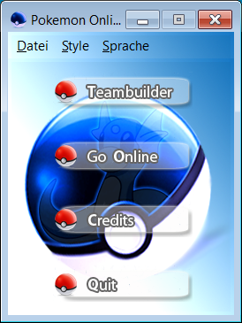 Nach der Installation von Pokémon Online kann das Programm auf jeden Fall über das Startmenü gestartet werden, eventuell auch über Verknüpfungen am Desktop und in der Schnellstartleiste, wenn diese Option mit ausgewählt wurde. Als erstes erscheint Fenster mit der Möglichkeit, entweder den Teambuilder zu verwenden oder zur Serverliste zu gelangen ("Go Online").