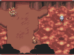 | 10 | Vulkanhöhle | Die Vulkanhöhle liegt auf Brodellande. Man kann sie auch in 2 verschiedene Höhlen unterscheiden: die normale Vulkanhöhle und die "dunklere" Vulkanhöhle. Die Dunkle Vulkanhöhle, wo sich Heatran mit dem 2. Stein, dem Feuerstein, versteckt, kann man erst später betreten, als die normalen Vulkanhöhle. Hier findet man hauptsächlich Pokémon des Feuertypes. | ![]() |