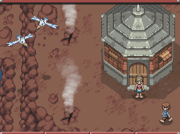| 23 | Haruba-Dorf | Eine Wüstenstadt mit Schiffsanlegestelle, indem sich einige Wohnhäuser, eine Ranger-Basis und ein ausgetrockneter See, der im Laufe des Spiels mittels eines Quests gefüllt wird, gefunden werden können. Bei deinem ersten Besuch in dieser Stadt, wird sie von wild gewordenen Hippopotas besetzt, die sich aber durch Zerstörung der Maschine von Team Nachtschatten verziehen werden. | ![]() |
