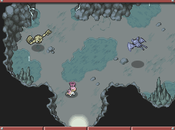 | 14 | Ozeanhöhle und Strand | Den Strand erreicht man, indem man Brisenau in Richtung Westen verlässt. Hier wird man seinen ersten Partner fangen (Mampfaxo, Staralili oder Pachirisu). Vom Strand erreicht man ein kleines Waldgebiet, wenn man die Treppe im Nord-Westen besteigt und man wird im Laufe der Geschichte auch eine Höhle am Strand entdecken, die sogenannte Ozeanhöhle. Dort wirst du das erste Mal mit den Maschinen von Team Nachtschatten konfrontiert. | ![]() |
