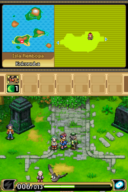 Jetzt, wo du die erste Mission erledigt hast, musst du die Feilblatthöhle wieder verlassen. An der ersten Kreuzung solltest du nach links und ein Koknodon fangen, welches du später brauchst, um einen Felsen aus dem Weg zu räumen. Weiter nach unten führt dein Weg, sobald Koknodon gewillt ist, dir zu helfen. Du wirst von einem Felsen aufgehalten, aber dank Koknodons Hilfe, kannst du ihn aus dem Weg räumen und die Feilblatthöhle wieder verlassen. Den Teakholzbusch kannst du auch getrost hinter dir lassen und dich wieder nach Kokonuba begeben.Falls du noch nicht gespeichert haben solltest, wirst du noch einmal daran erinnert, kurz nachdem du die beiden Steinmonumente auf der Rpute zwischen Kokonuba und dem Teakholzbusch hinter dir gelassen hast und drauf und dran bist Kokonuba zu betreten.