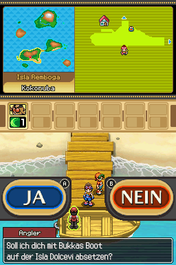 Dein nächstes Zwischenziel heißt Bukkas Haus, also begib dich dorthin! Hier erhälst du den Auftrag zusammen mit Nick nach geeignetem Holz für die Reparatur der Ukulele auf der Isla Dolcevi zu suchen. Begib dich zum Steg und nimm die kostenfreie Überfahrt des Anglers in Anspruch.