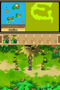 Hier siehst du wie ein großer Mob sich über das Mysterium des leuchtenden Steines unterhält und plötzlich verschwinden alle, weil eine kleine, grün leuchtende Kugel auftaucht. Es stellt sich heraus das es sich dabei um Celebi handelt, welches du jetzt fangen sollst.