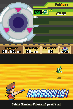 | die Diskussion über das Leuchten | Celebis Boss-Screen | Kampf gegen Celebi | in der Vergangenheit mit Helio |