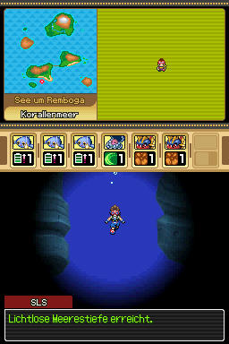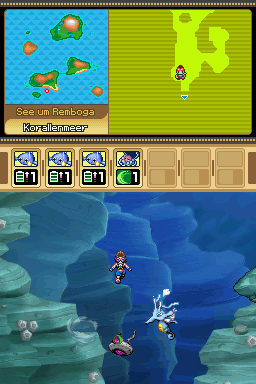 Deine nächste Mission erhälst du von besagtem Mädchen. Du musst mithilfe von Lapras, welches du zu erst zähmen musst, an das Korallenmeer schwimmen, wo du nach einem abgestürztem Donnergleiter, dem Fluggerät der Pokénapper, tauchen sollst. Also lass dein Tauchabenteuer beginnen, aber beachte, dass alle Pokémon, die du bisher gefangen hast, auch Pichu, an der Oberfläche bleiben müssen! Es bleibt dir überlassen, welche Pokémon du hier fangen möchtest, es bietet sich aber an, dass du hier ein neues "Unterwasser"-Team aufbaust und die Erfahrung einstreichst. Aber Corasonn musst du dir schnappen, um weiter zu kommen. Denn mit dessen Fähigkeit musst du den Felsen oberhalb der Strömung zertrümmern.Sobald du weiterschwimmst, wirst du sehen, wie ein Seeper und ein Perlu den gesuchten Donnergleiter bewachen. Beruhige sie und der Gleiter taucht weiter hinab, weil ein Seedraking sich daraus einen Spaß macht.