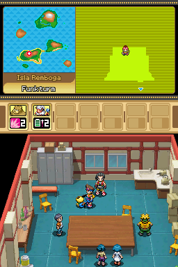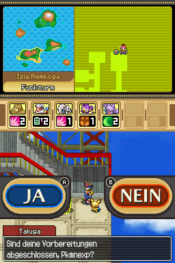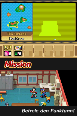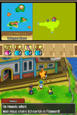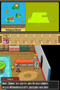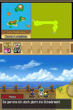 Anschließend kannst du mit Hilfe der "vereinten Zielbeseitigung" dieses Übel beseitigen. Hierzu benötigst du die 3 zuvor gefangenen Wasserpokémon. Sobald du dieses Problem gelöst hast, kannst du dir das Haus von innen ansehen und Nema wird deinen FangKom wieder auf Vordermann bringen. Jetzt kannst du die "FangKom-Individualisierung" vornehmen. Diese wird dir Nema auch noch einmal kurz erklären. Nun führt die Reise weiter zum Monte Latolato.