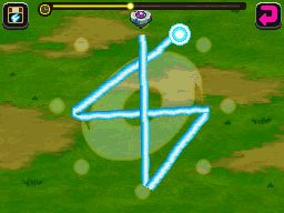 Neu in Pokémon Ranger 3 sind die Ranger-Symbole, mit dessen Hife du Pokémon zu dir rufen kannst. Dazu benutze einfach den Symbol-Modus und zeichne das Symbol auf des Touchscreen.![]() |