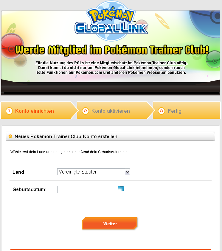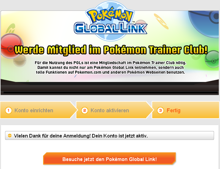 Zunächst ist es erforderlich, sich im Pokémon Trainer Club zu registrieren. Ansonsten kann man Pokemon Global Link nicht nutzen.>>>Klick<<<