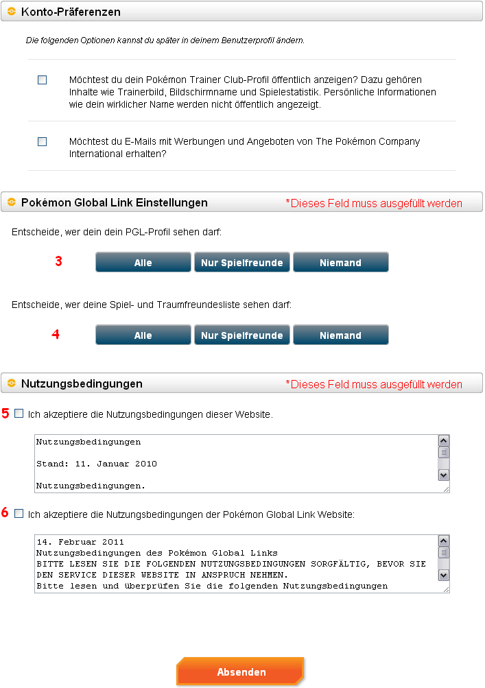 5) Dies sind die Nutzungsbedingungen des Pokemon Trainer Clubs. Eine Registration ist nur möglich, wenn man dieses Feld abhakt.