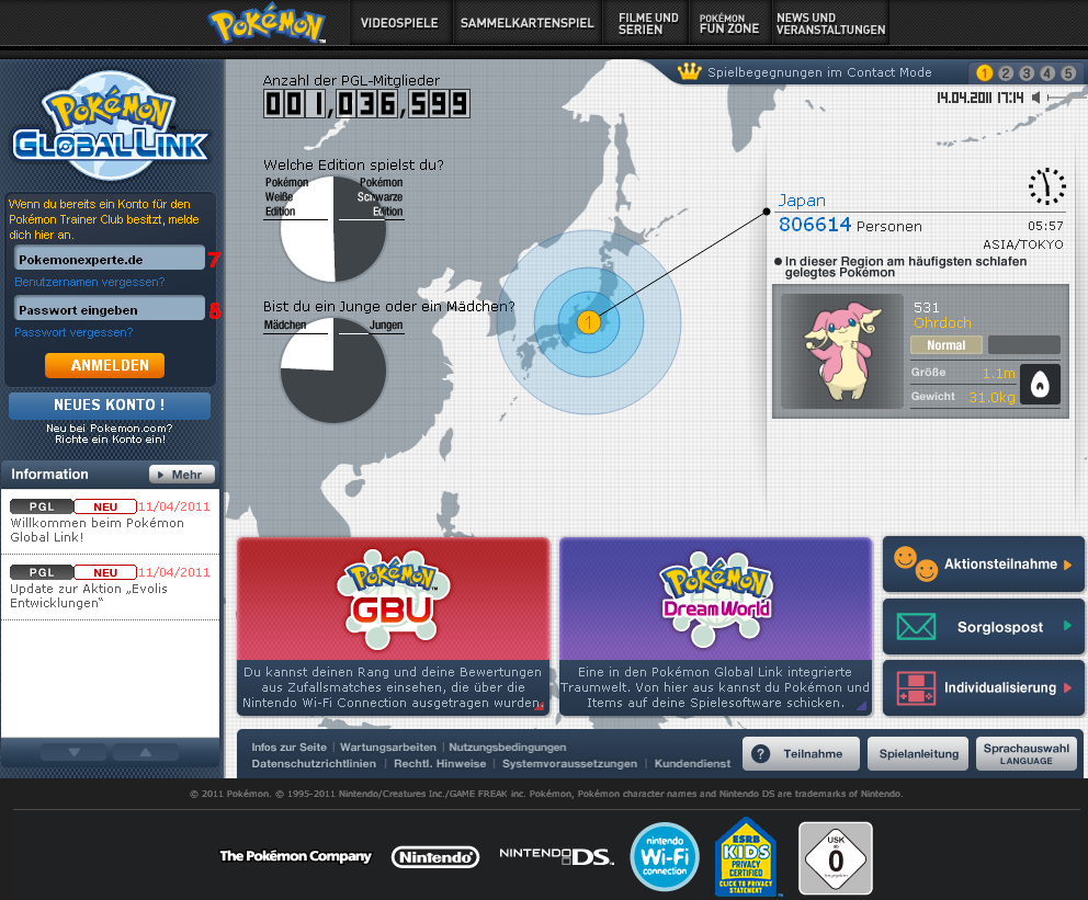 Für den Gebrauch des Global Links und all der Features wie die Traumwelt musst du dich von nun an stets auf der Seite des Pokemon Global Link einloggen.