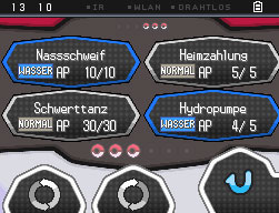 Das Pokémon, das sich in der Mitte befindet, hat die Möglichkeit alle gegnerischen Pokémon anzugreifen. Dagegen können die beiden Pokémon, die sich an den Seiten befinden, nur das Pokémon angreifen, welches genau gegenüber steht und dasjenige, welches sich in der Mitte befindet. Dieses Konzept macht besonders Strategien sehr interessant, die darauf basierend entwickelt werden können. Natürlich können die Pokémon während des Kampfes auch die Plätze tauschen, aber das kostet dich eine Runde.![]() |