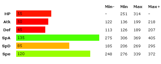 Mit Gedankengut werden seine Spezial-Werte um 50% erhöht. Also 1/3 mehr als vorher. Wenn es dann ganz schnell ist, kann es mit den drei anderen Attacken "sweepen". Und dank einem Wesen, welches den Initative-Wert um 10% erhöht, gehört Simsala zu den schnellsten Pokémon.