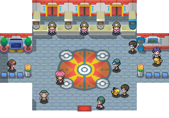 Nachdem man die Top4 und den Champ besiegt hat, erhält man von seiner Mutter eine Nachricht, dass dein Freund/Rivale aufgebrochen ist. Wenn du ihm folgst, dann kommst du schließlich zum Kampfareal.Ankommen wirst du an einem kleinen Bootsteg. Läufst du nach rechts, wirst du den Eingang zum Kampfareal erreichen. Vorher musst du jedoch noch durch einen kleinen Durchgang, in dem sich mehrer Damen aufhalten, die dir wertvollte Tipps mit auf den Weg geben.