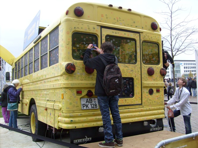 Unterschriften auf dem Bus